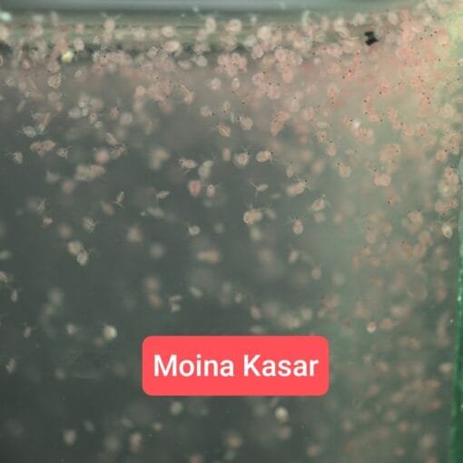 Moina thrives on simple feeds like yeast, algae paste, or spirulina powder. Keep their environment clean for best results.